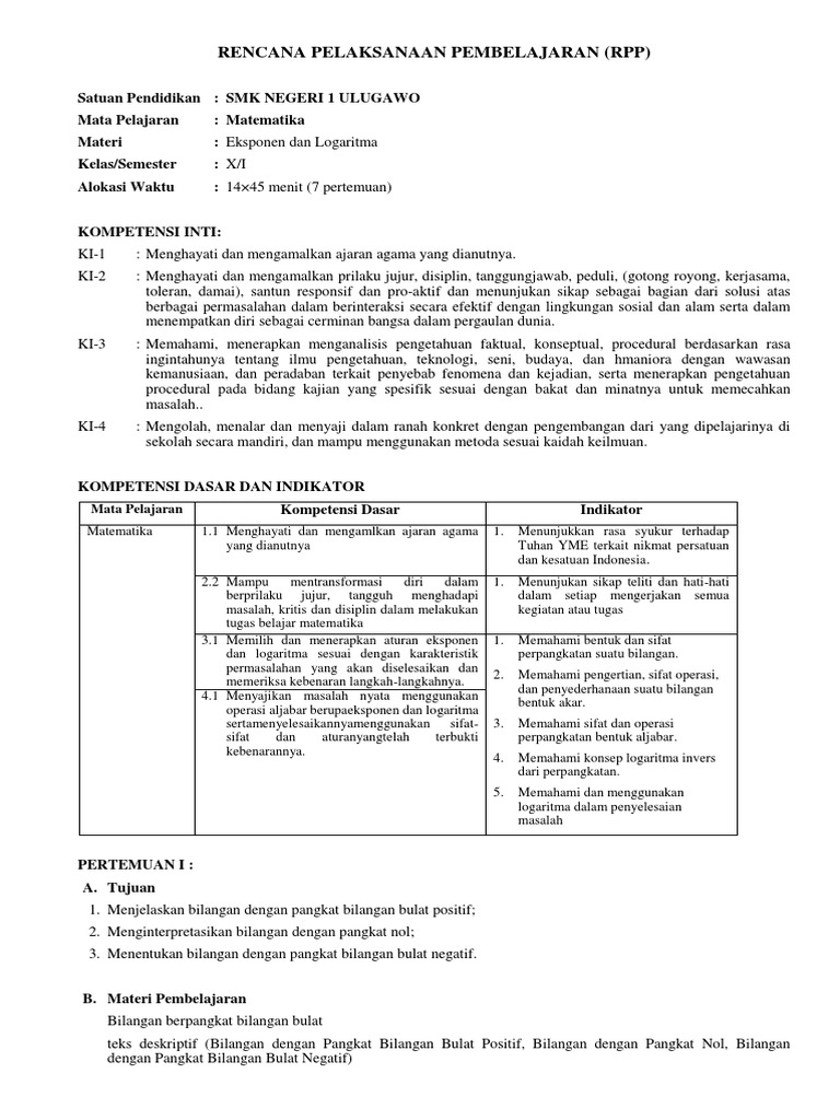 Contoh Rpp Matematika Smk Sesuai Dengan Kurikulum 2013