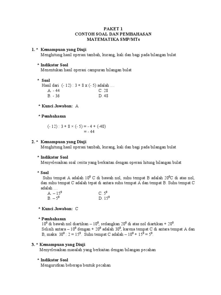 2 Mat Paket 1 Contoh Soal Pembahasan
