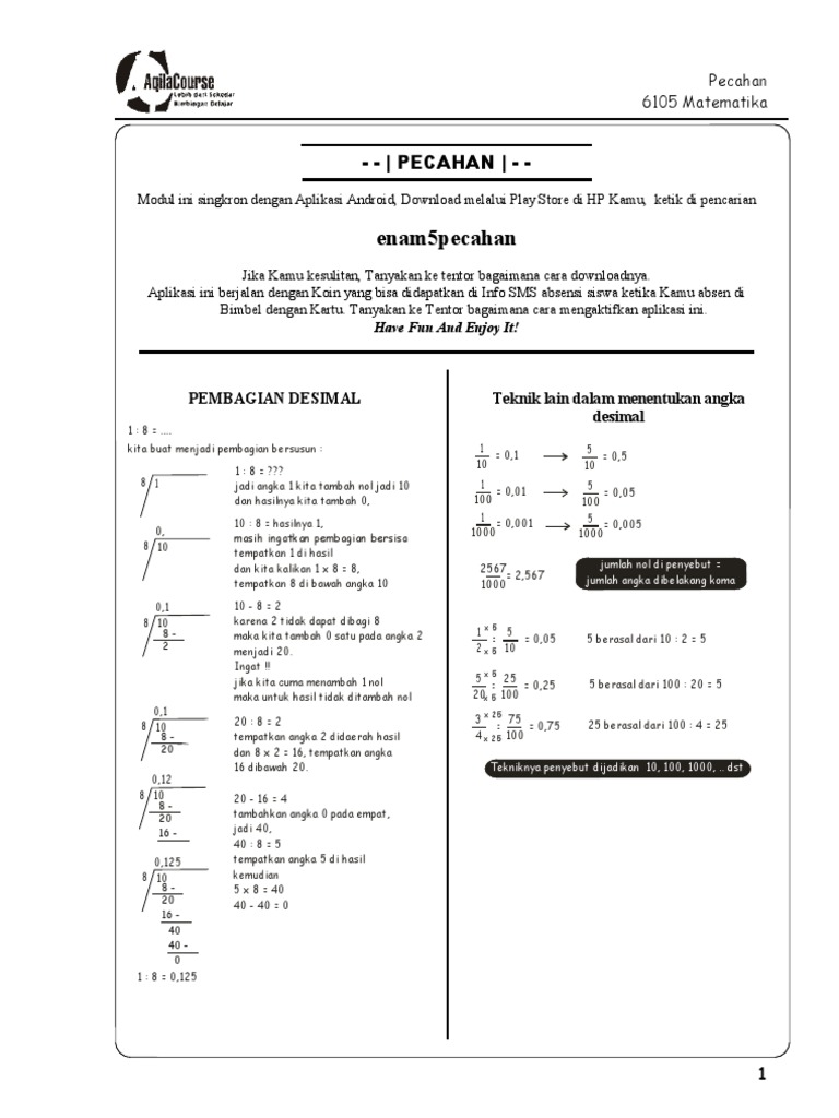 Mengubah Pecahan Biasa Menjadi Desimal Dan Sebaliknya