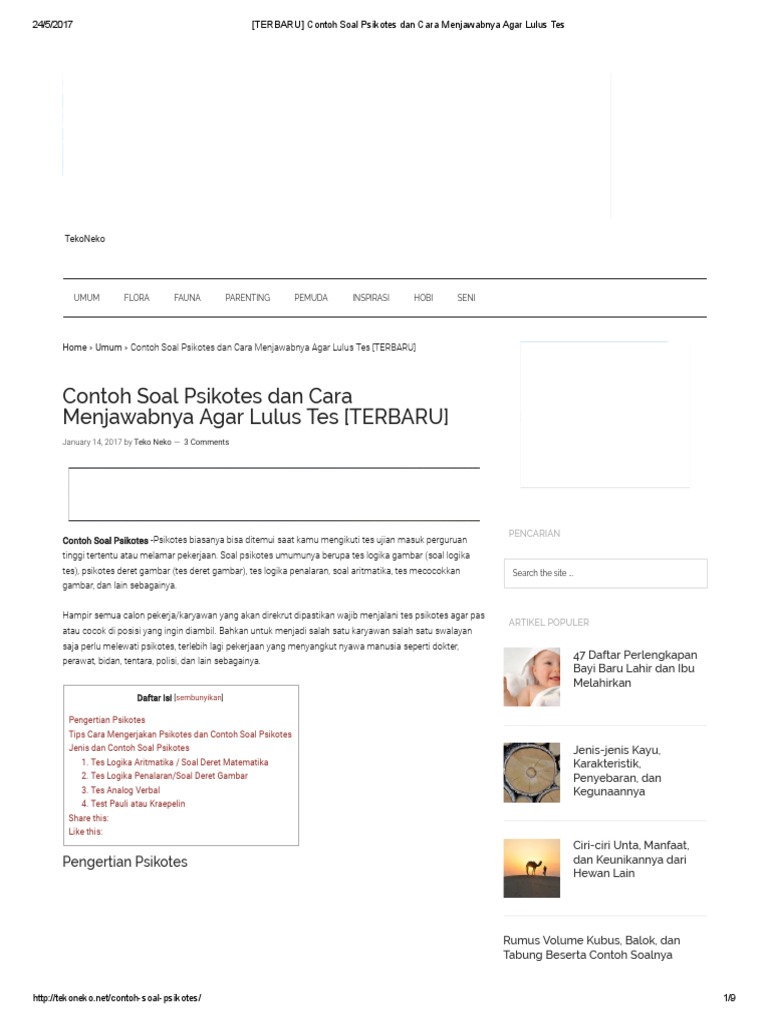 Pdf Contoh Soal Psikotes Kerja Dan Jawaban Havid Aji