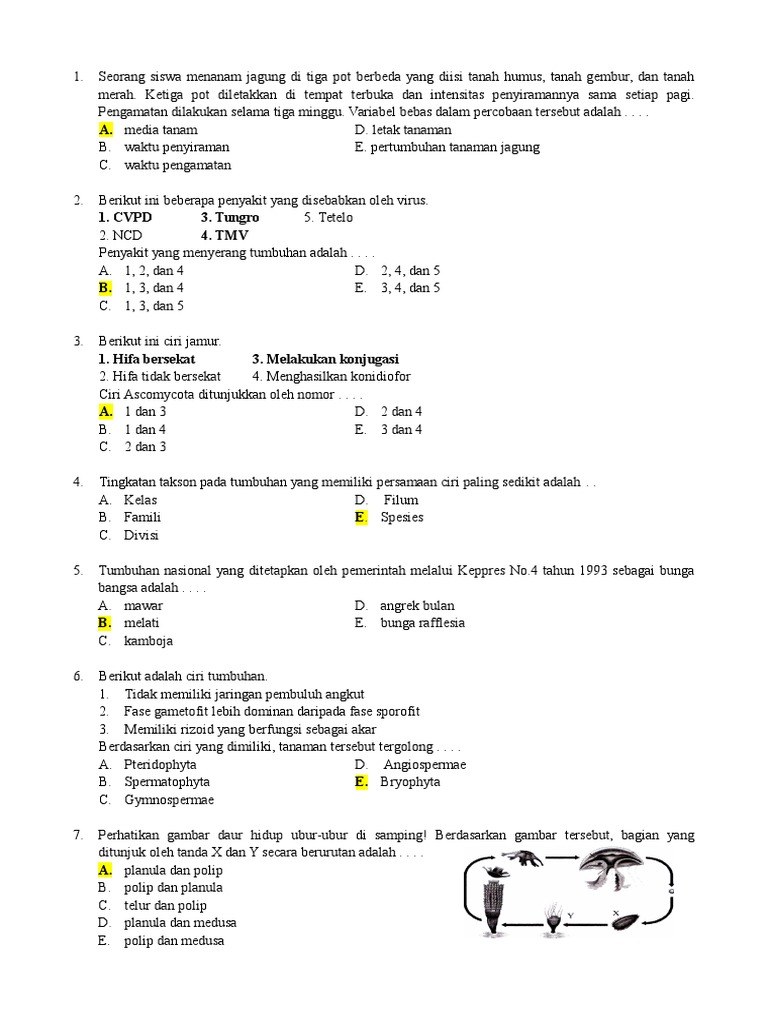Soal ujian nasional sma biologi. Variabel tergantung berfungsi untuk mengetahui pengaruh dari variabel bebas. Pilihlah jawaban yang tepat dengan menandai tanda silang x pada pilihan jawaban a b c dan e.