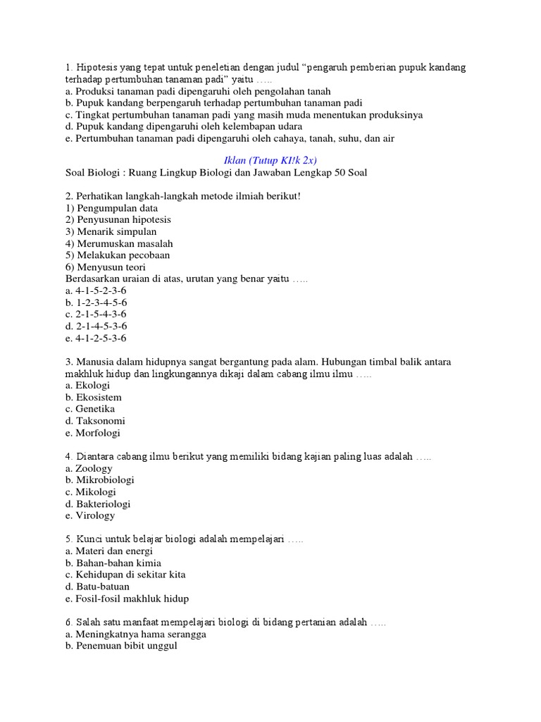 Contoh Soal Biologi Bab I Kerja Ilmiah Mengenal Biologi