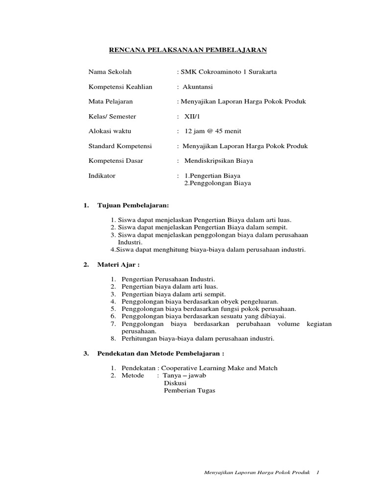 Rpp Menyajikan Laporan Harga Pokok Produk Smt Gasal