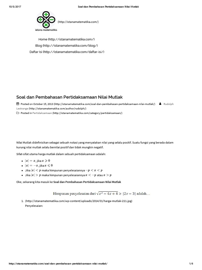 Download Soal Pertidaksamaan Nilai Mutlak Satu Variabel Pdf