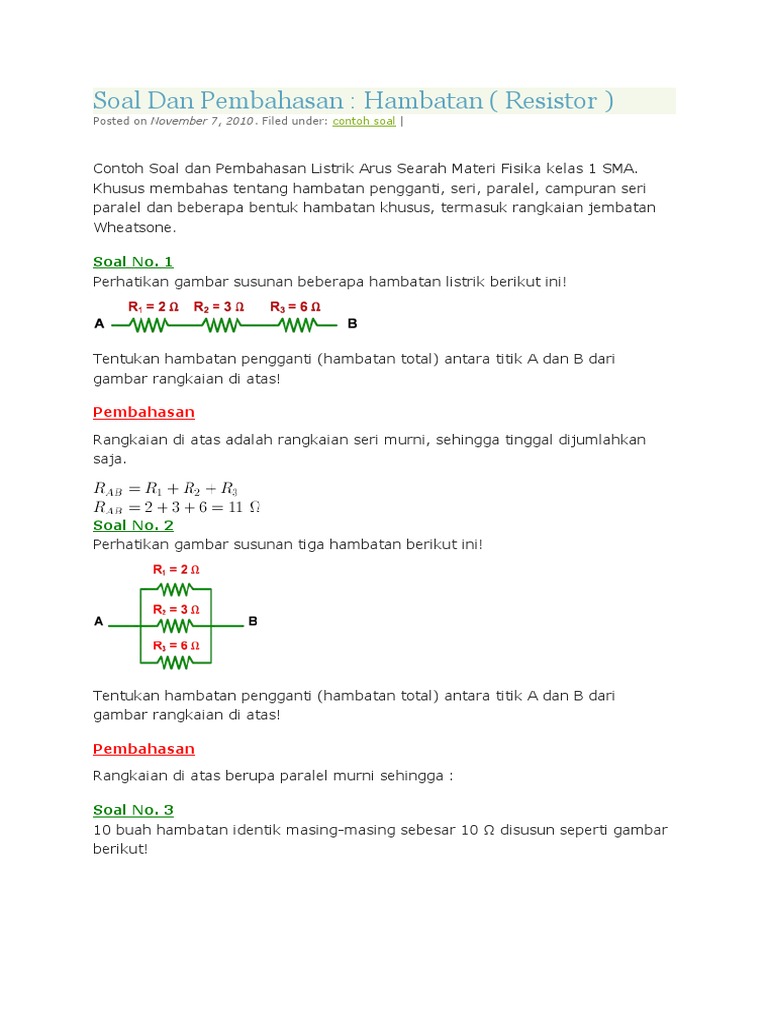 Soal Dan Pembahasan Hambatan Resistor