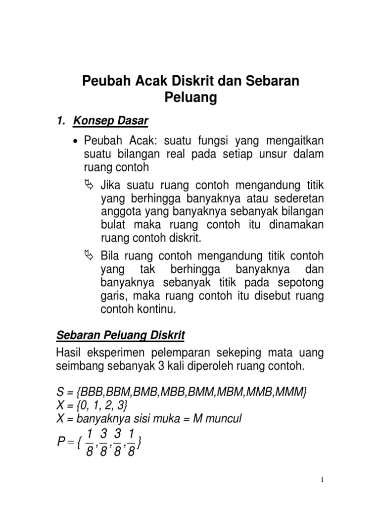Distribusi Variabel Acak Diskrit Pdf E Book Statistika
