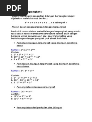 Bilangan Berpangkat Jenis Sifat Operasi Hitung Soal