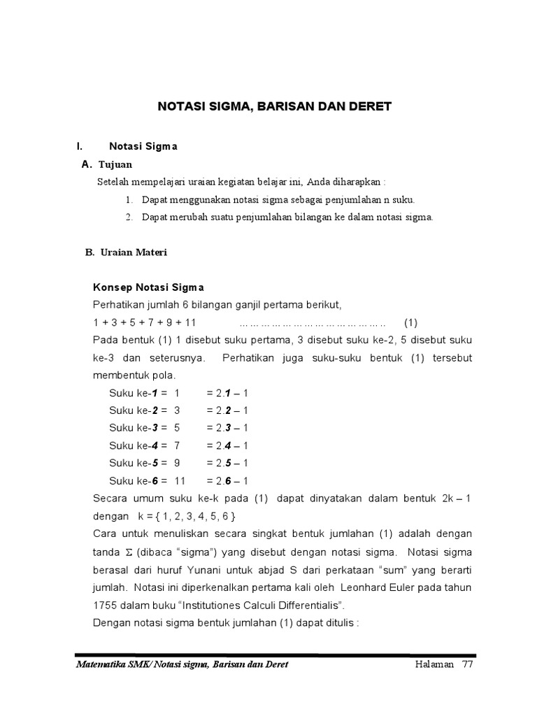 Bab Xviii Notasi Sigma Barisan Deret Pdf Document
