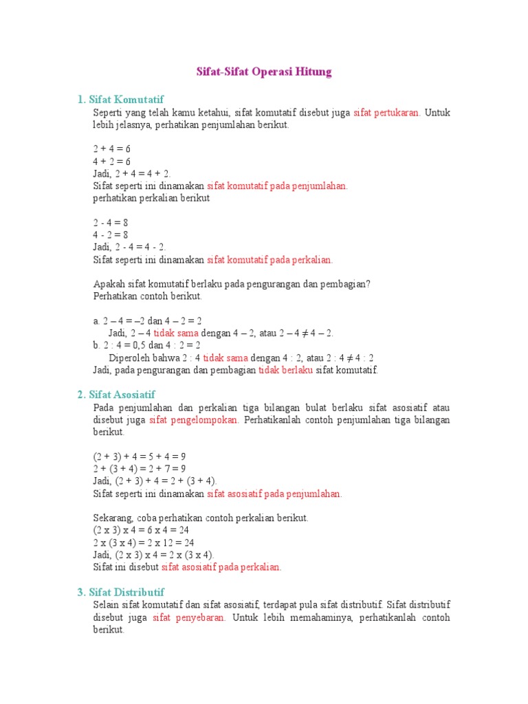 Sifat Sifat Operasi Hitung Edisi Revisi 2016 Contoh Soal
