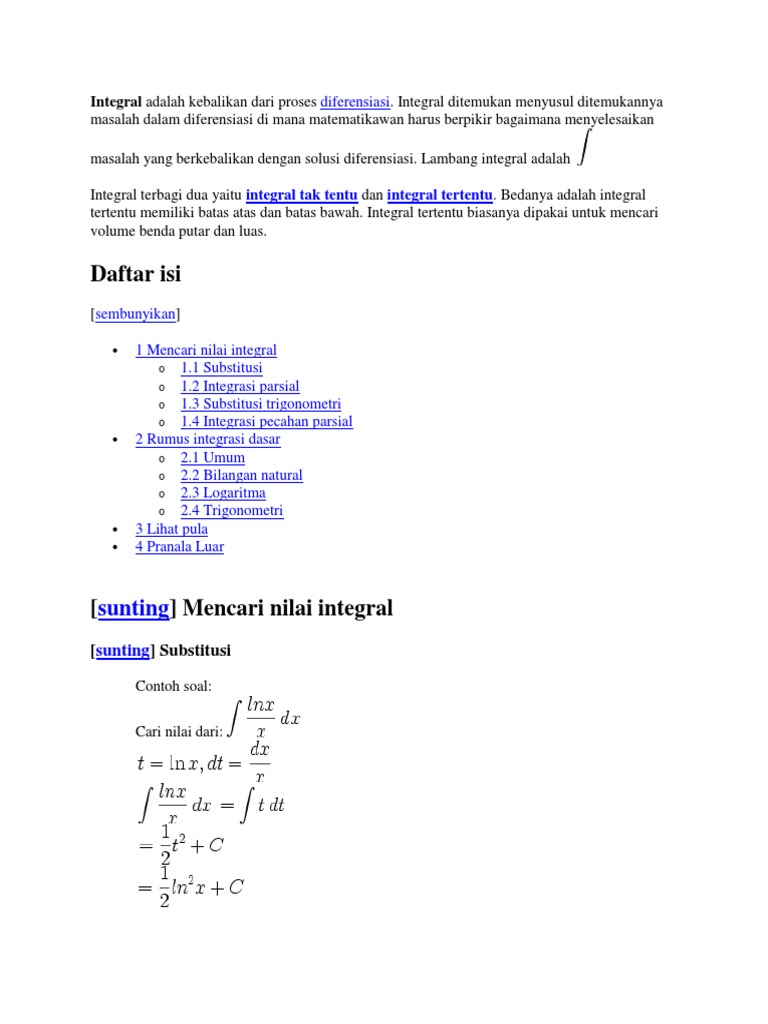 Penyelesaian Integral Substitusi Dan Integral Parsial Ilmu