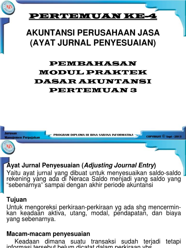 Akuntansi Jurnal Penyesuaian Perusahaan Jasa Dan Contoh Soal