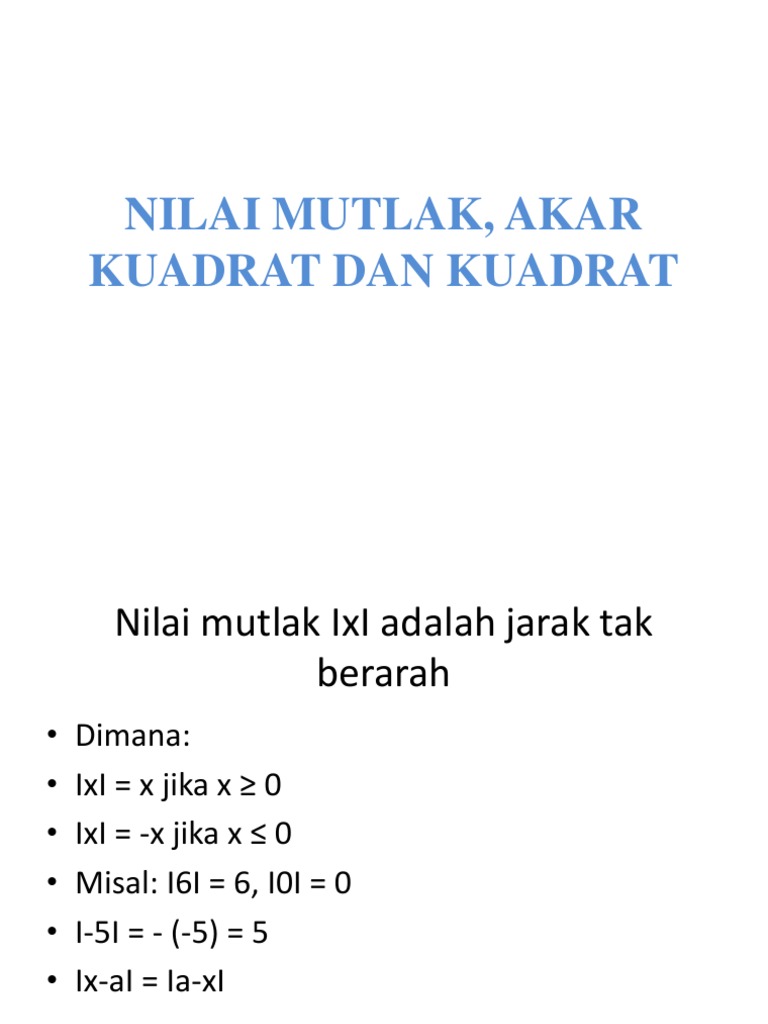 Nilai Mutlak Akar Kuadrat Dan Kuadrat Ppt