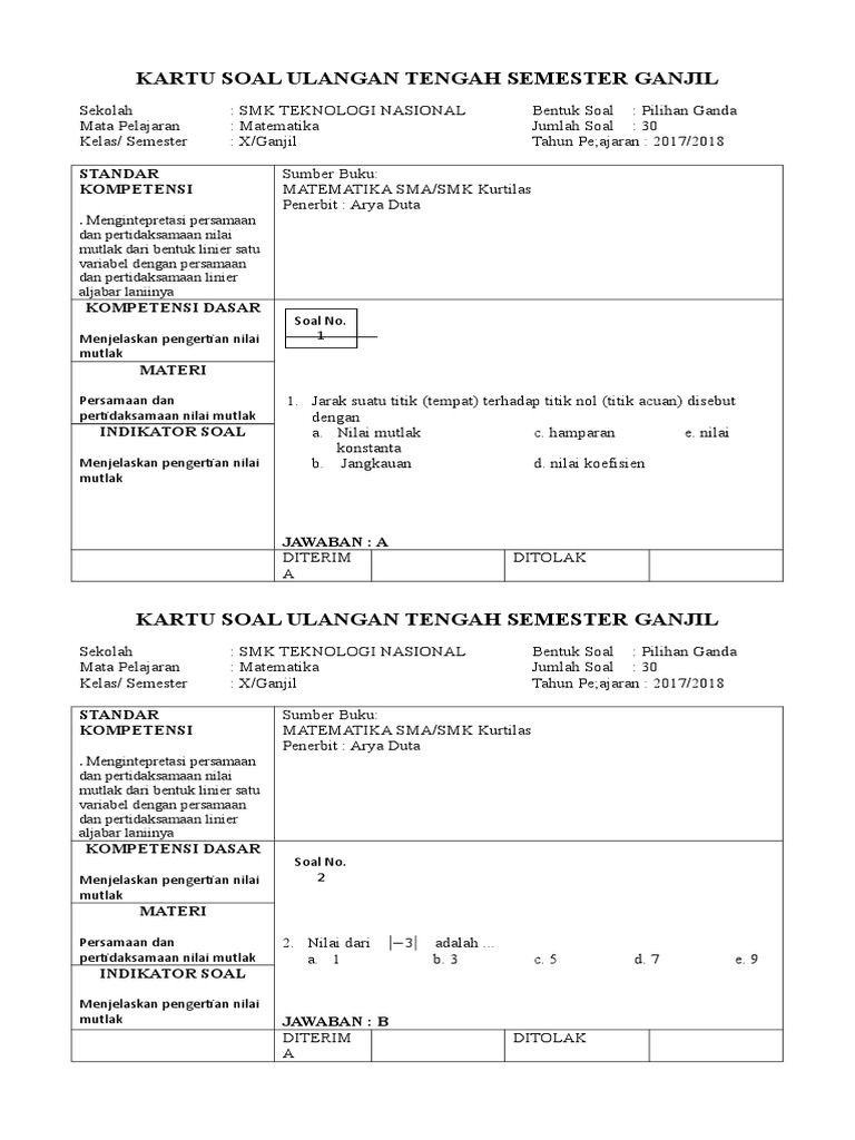 Inilah contoh soal pilihan ganda persamaan nilai mutlak serta jawaban. Contoh file soal uts lengkap kelas 1 6 sdmi semua mata pelajaran 20162017 berikut ini adalah kumpulan dari berbagi sumber tentang kumpulan soal pilihan ganda nilai mutlak yang bisa gunakan untuk bank soaldownloadsd dan diunduh secara gratis dengan menekan tombol download biru dibawah ini. Contoh soal pilihan ganda teks laporan hasil observasi lho dan jawabannya hallo adik adik semua bagaimana kabarnya.