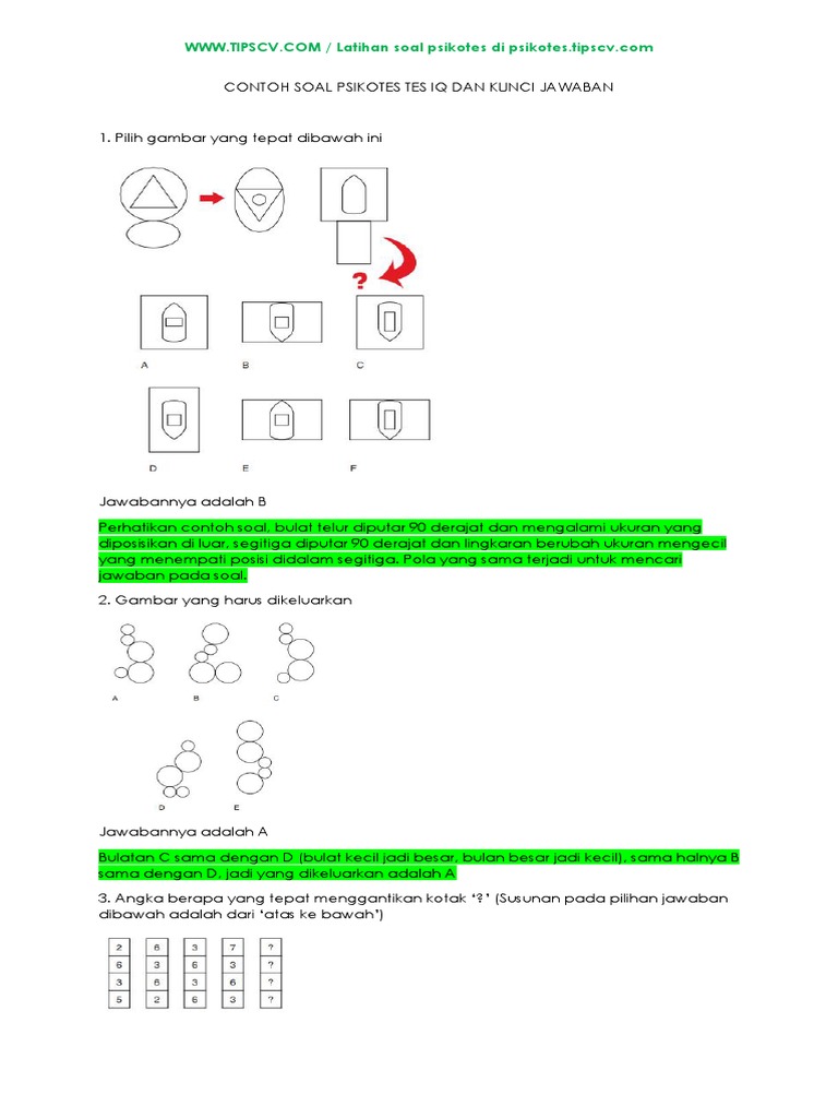 Contoh Soal Psikotes Tes Iq Dan Kunci Jawaban Pdf