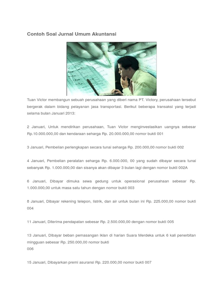 20 Contoh Soal Jurnal Umum Perusahaan Dagang Dan Jawaban