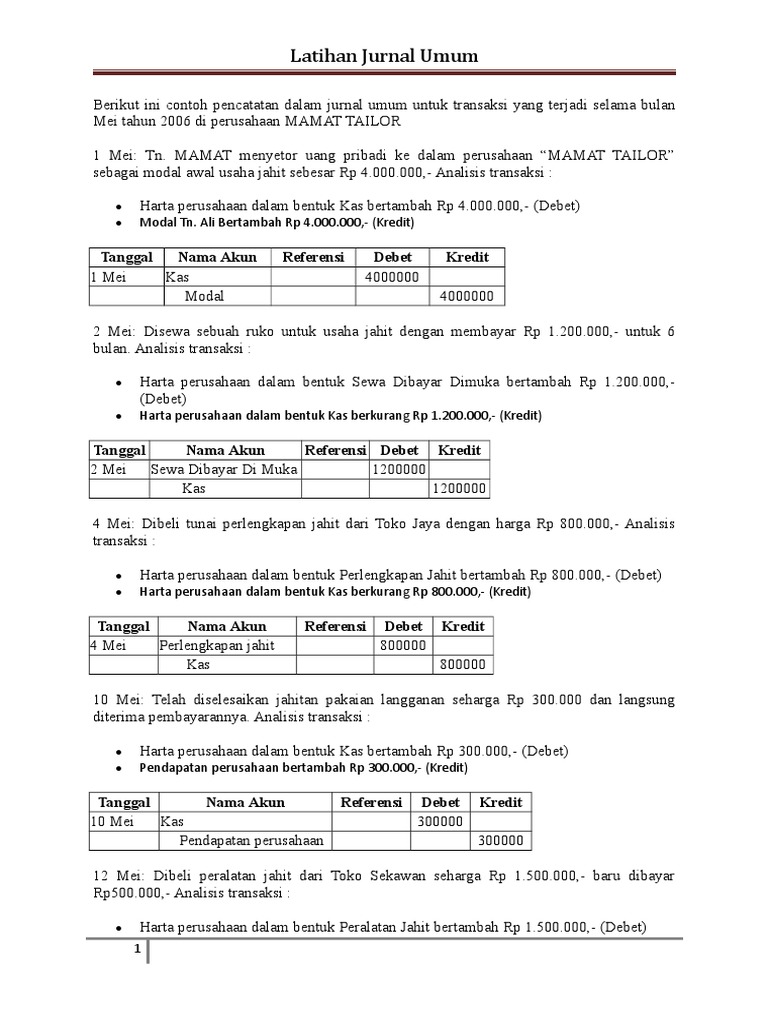 Contoh Soal Jurnal Umum Lengkap Dengan Jawaban Dan Analisanya