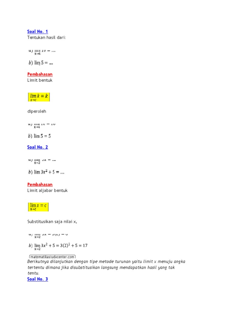 Bank Soal Dan Pembahasan Matematika Dasar Limit Tak Hingga