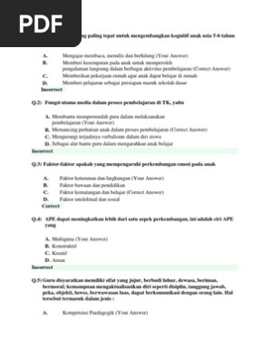 Uji Kompetensi Guru Tk Paud 100 Soal Q 1 Menurut