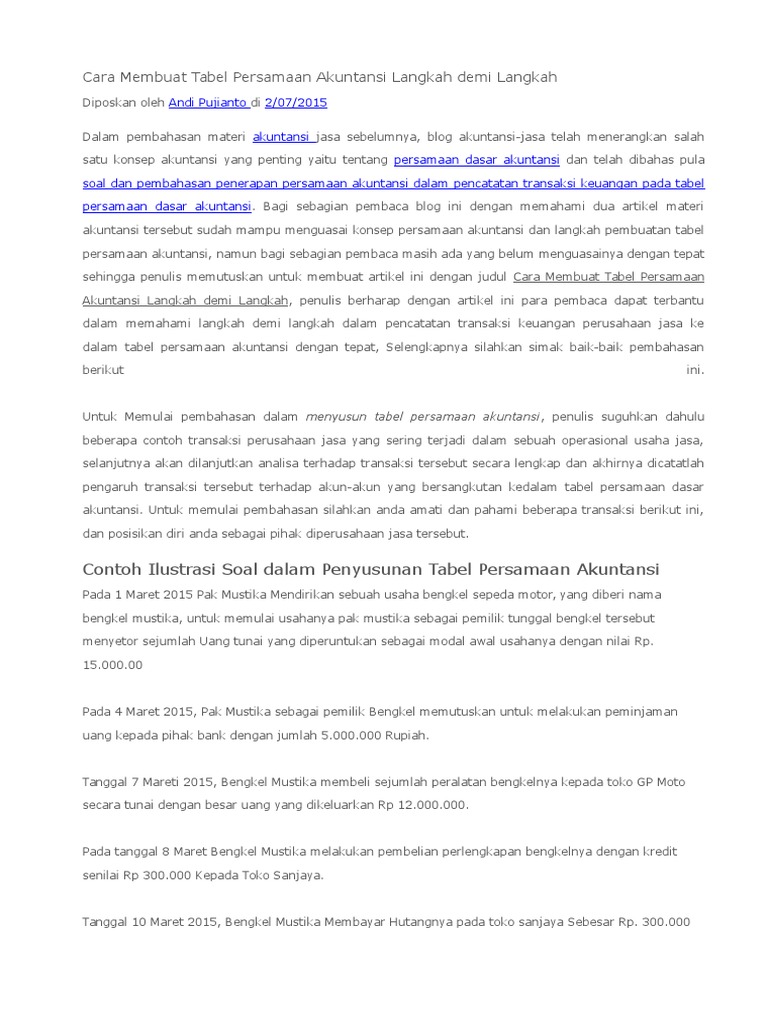 Contoh dan latihan soal jurnal umum akuntansi perusahaan jasa 2 berikut transaksi usaha bengkel motor mimi mimi selama bulan nopember 2014.