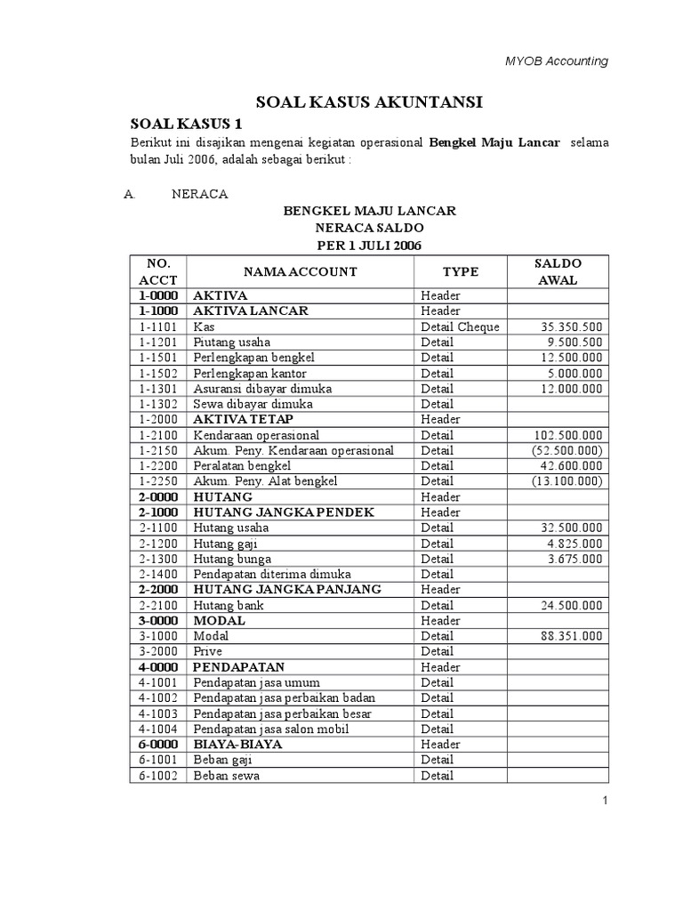Soal Akuntansi Myob Bengkel Maju Lancar
