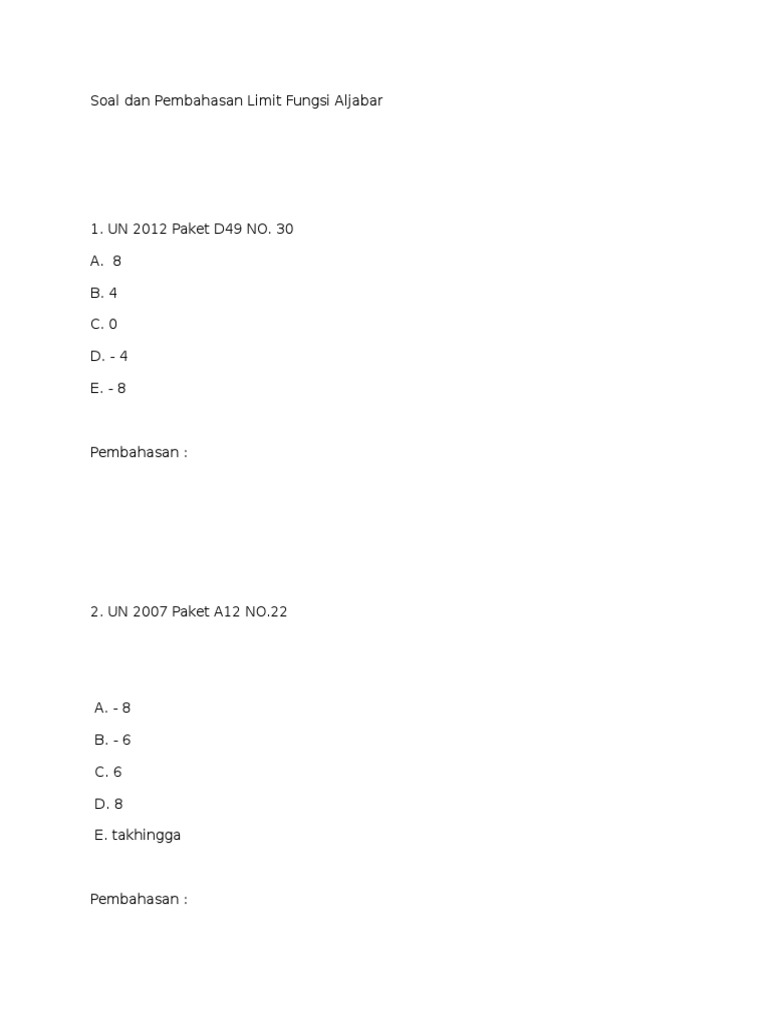 Soal Soal Limit Fungsi Aljabar Doc