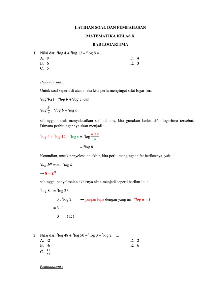 Latihan Soal Dan Pembahasan Logaritma Sma Kelas X