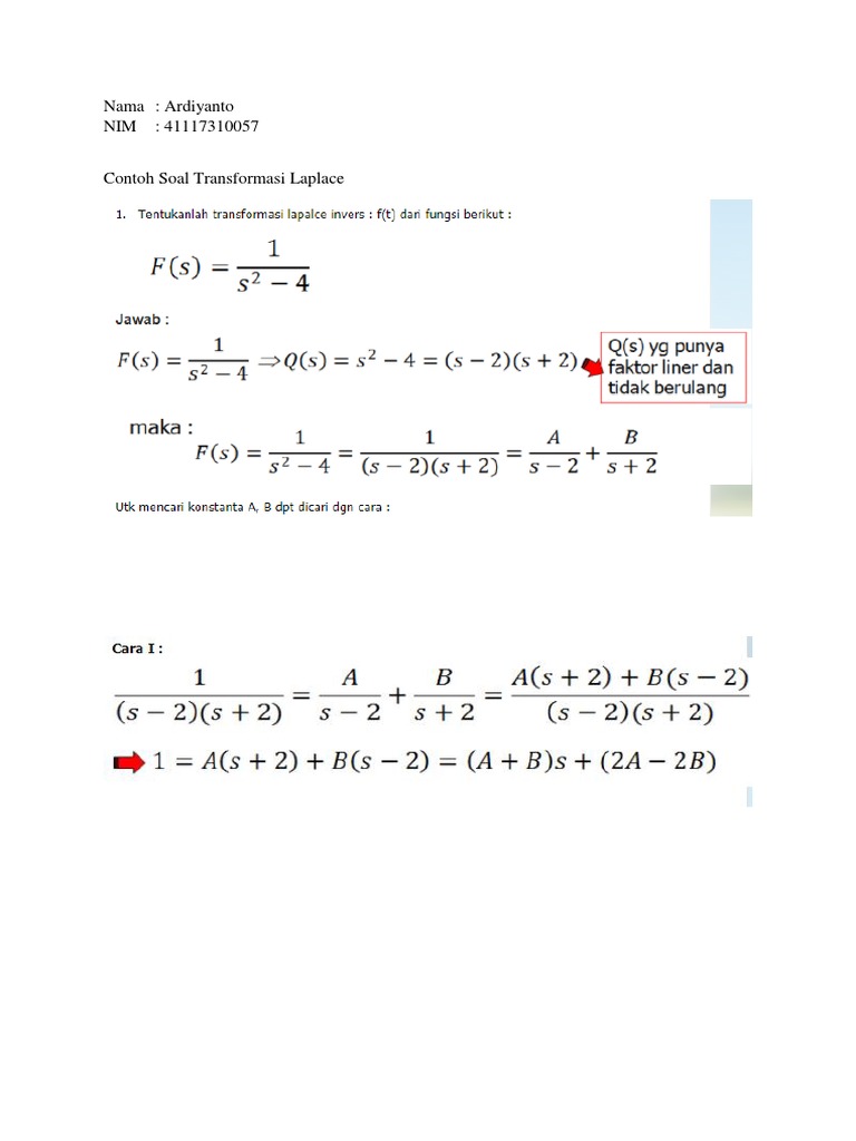 Contoh Soal Dan Jawaban Transformasi Laplace Pdf Document