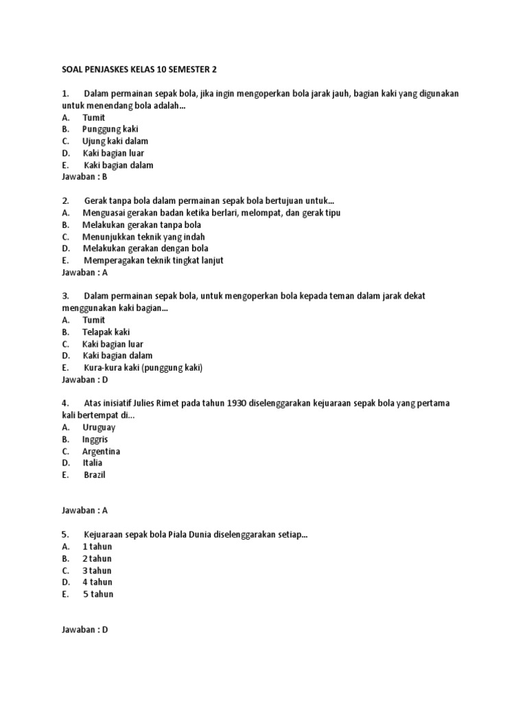 5 Soal Tentang Sepak Bola. 10 d 20 d 30 c 40 a 50 x. Latihan soal penjas tentang atletik dan jawabannya ini terdiri dari dua jenis soal yaitu soal pilihan ganda yang.