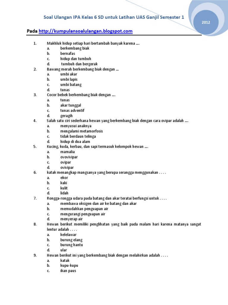 Mar 04, 2021 · home » soal try out sd » soal try out ipa kelas 6 sd dan kunci jawaban.